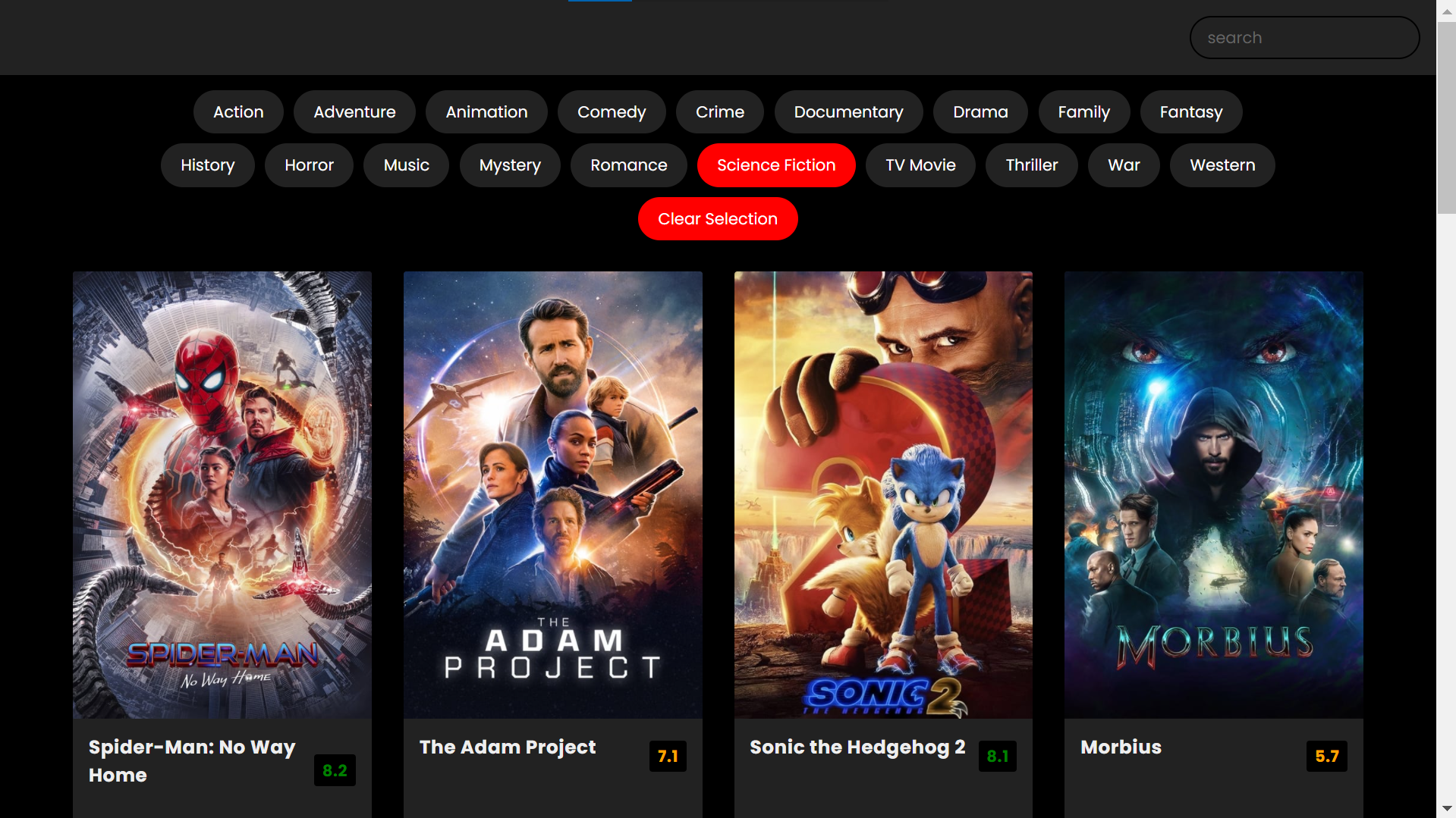 this is a fully-functional movie app with details of movies, user ratings, working search bar to search any movie you want, genres based movie tags, etc