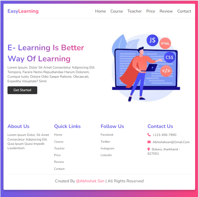 this is a multi-page and fully responsive educational website design using HTML, CSS and JavaScript